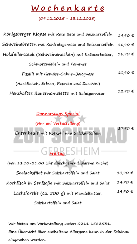 Kein Problem - wir machen das! Inspiration findest du auf unserer Speisekarte. Wir freuen uns auf deine Vorbestellung.