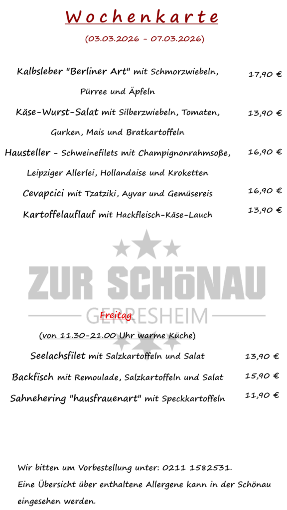 Im Herzen von Düsseldorf Gerresheim befindet sich die Gaststätte Zur Schönau. Hier trifft sich Jung und Alt zum klönen, darten und einfach Spaß haben. Dazu gibt es das ein oder andere leckere Schlösser Alt und eine gut bürgerliche Küche.